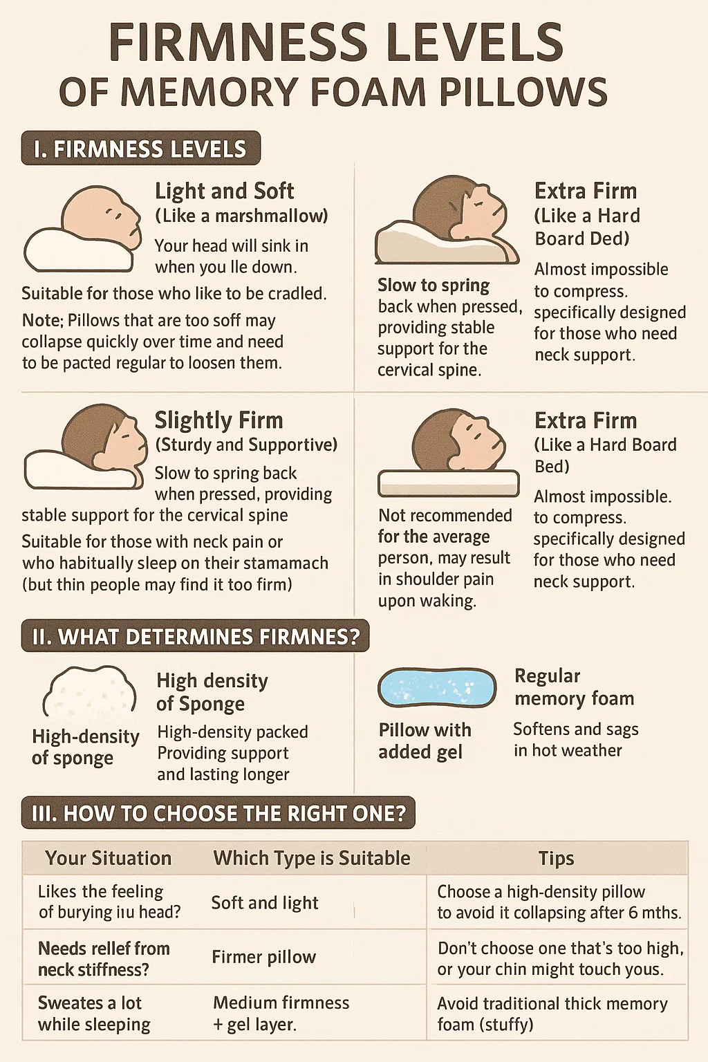 Regarding the differences in firmness among memory foam pillows, here's an explanation: