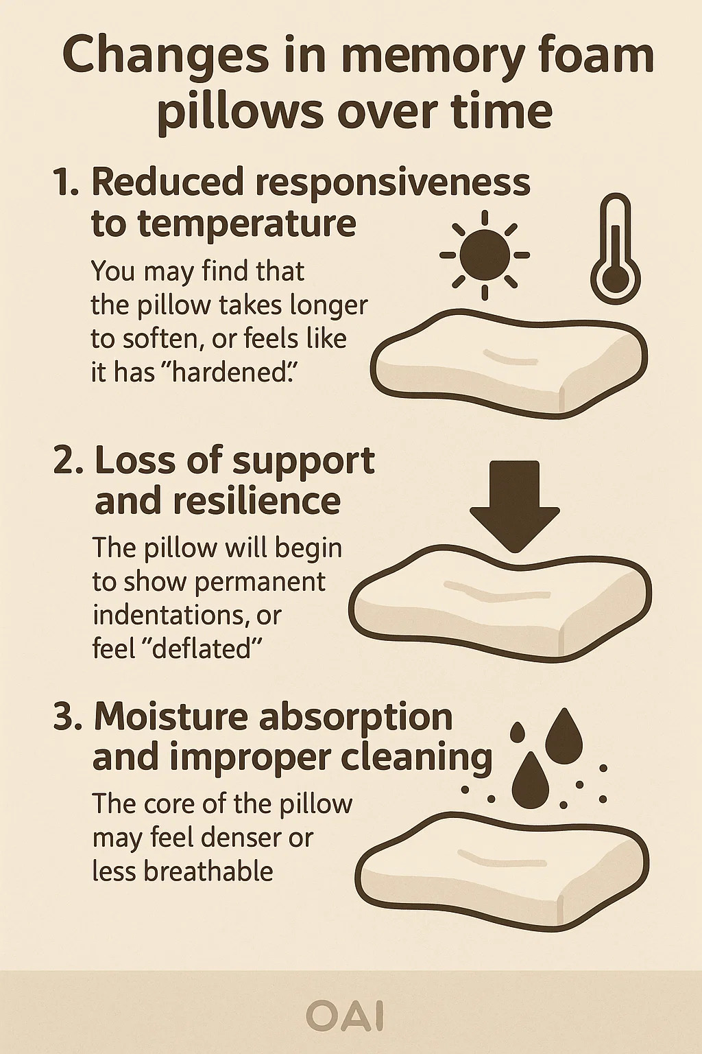 Result: You may find that the pillow takes longer to soften after you lie on it, or that the degree of softening is not as noticeable as when it was new, which may create the illusion that it has **"hardened."**