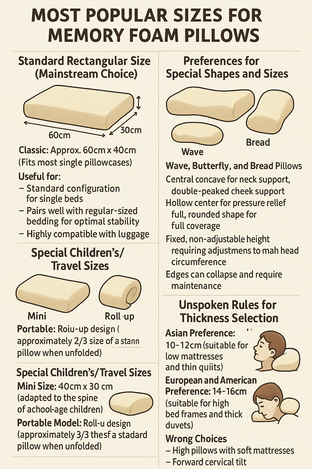 The following is a breakdown of the most popular sizes for memory foam pillows: